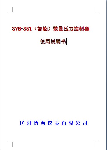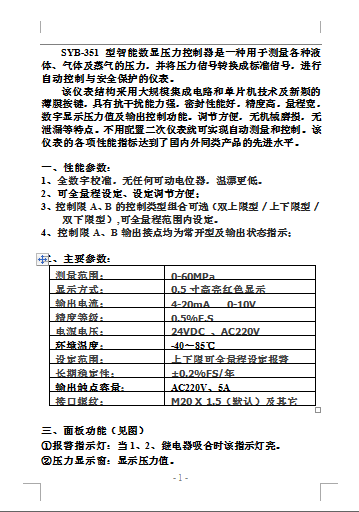 SYB-351(智能)數顯壓力控制器-使用說明書